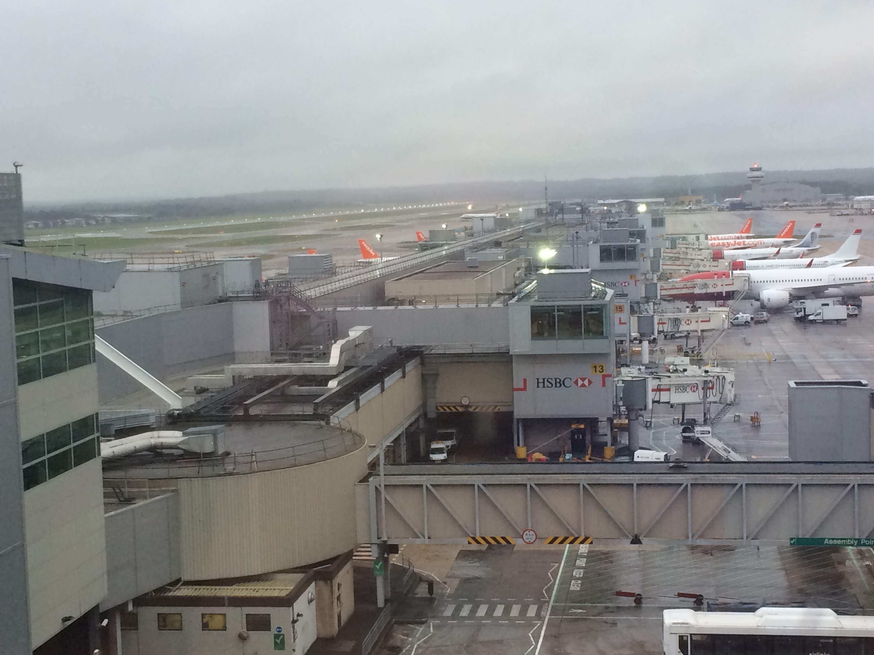 Whilst James got in line for bag drop I went and checked in for our overnight stay at the new hotel in Gatwicks South terminal – The Bloc (this is the one in the terminal whose front desk is next to customs) I’d requested a runway view what with me being a geek and loving to watch the planes and we weren’t disappointed. This was our view ……..